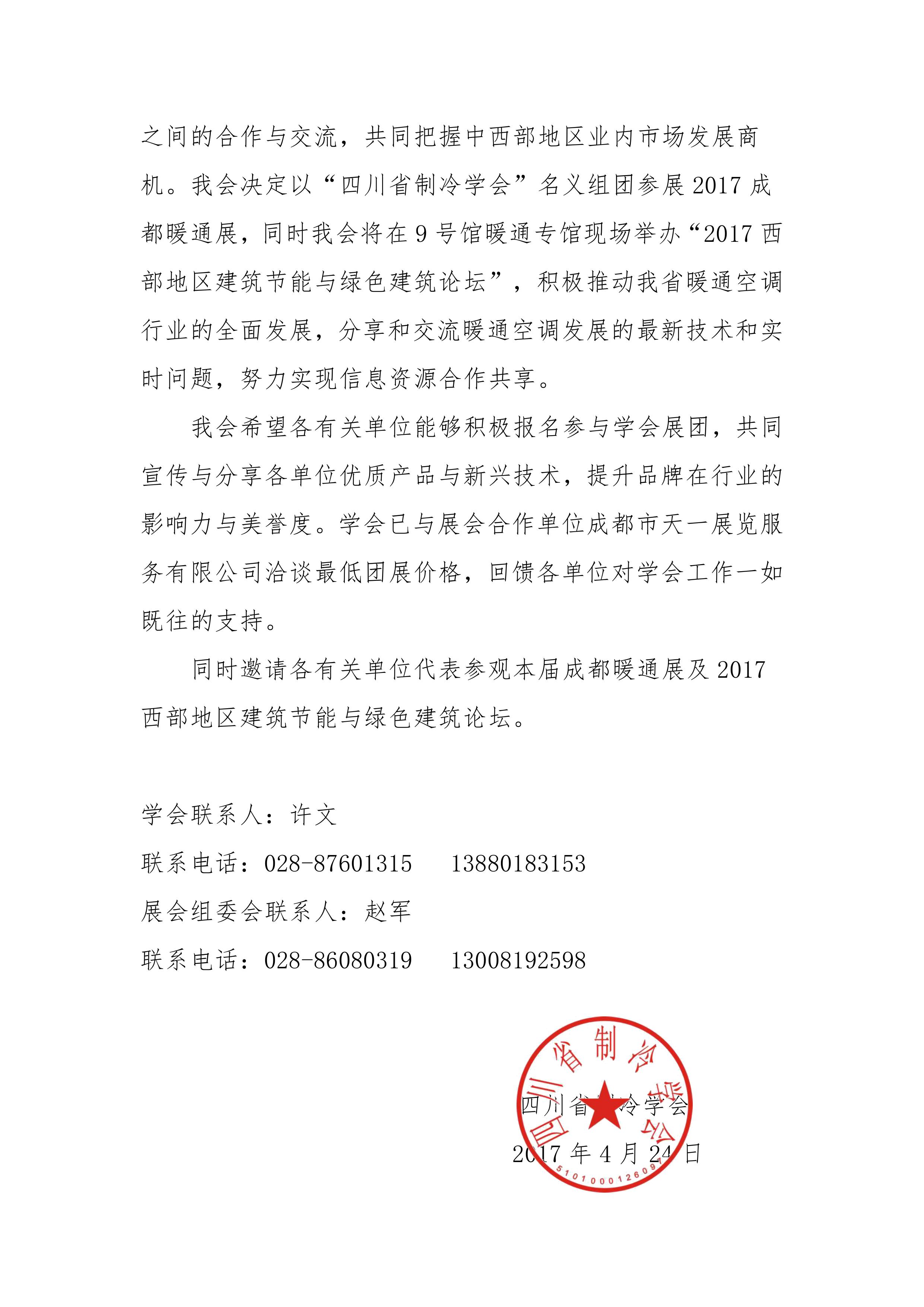 關于組團參觀參展2017第十七屆中國成都建筑及裝飾材料博覽會暨暖通展會的通知