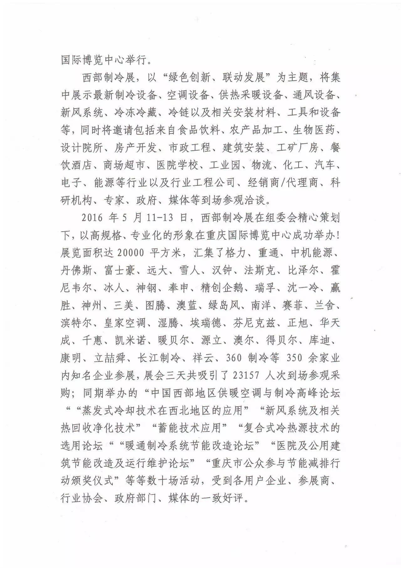 關(guān)于邀請請參加“2017第三屆中國西部國際制冷、空調(diào)、供熱、通風(fēng)及食品冷凍加工展覽會”的函